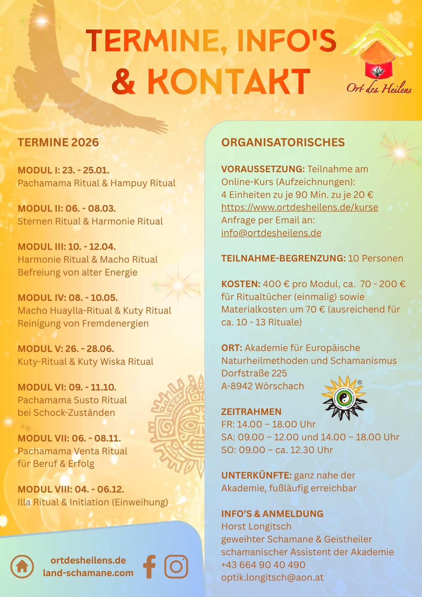 Die Rituale werden unter Anleitung gemeinsam durchgeführt, sodass du Sicherheit und Vertrauen gewinnst, um sie auch selbstständig in deinem Umfeld anzuwenden.