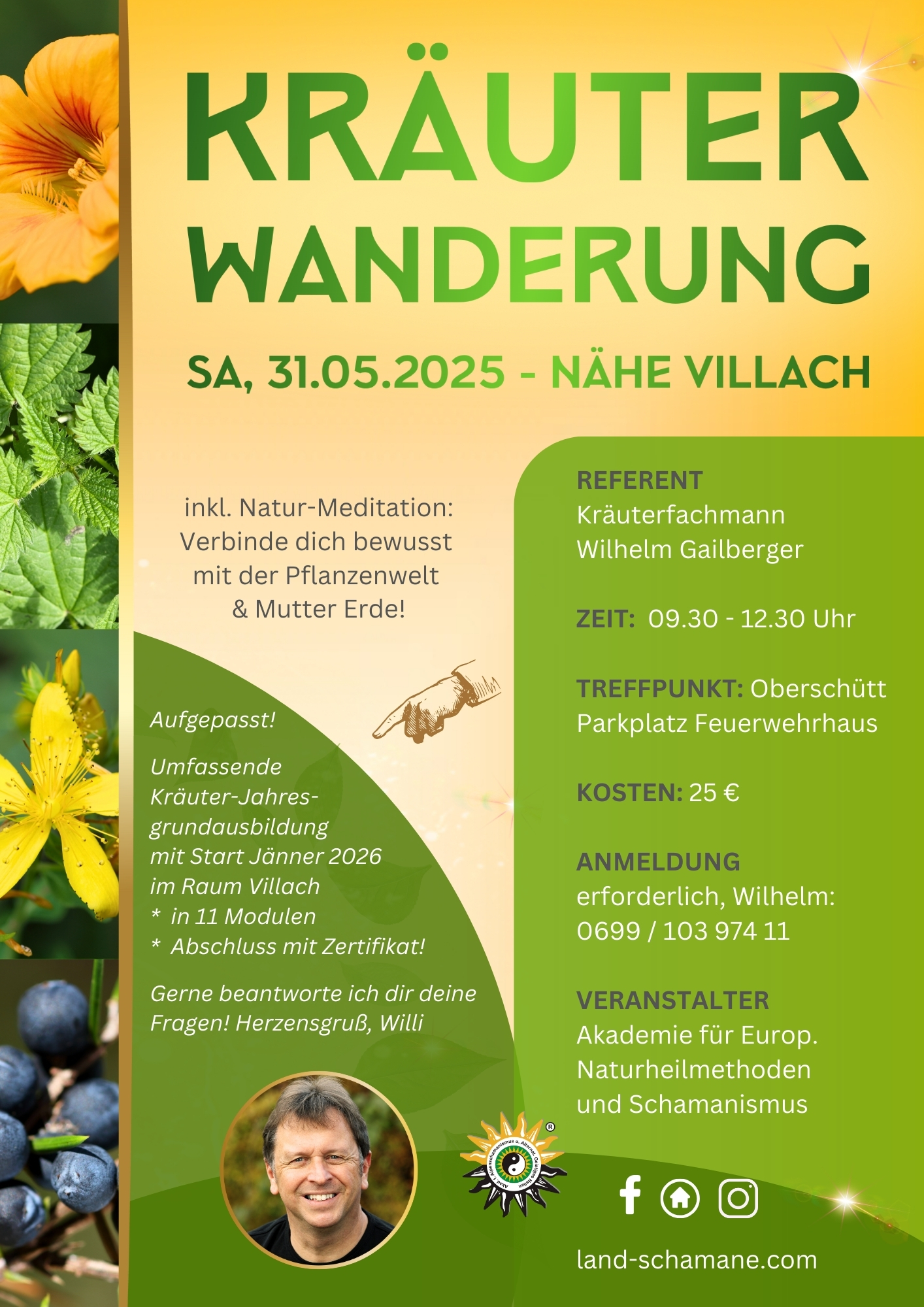 Verpasse auch nicht den Themen-Abend „Kräuter erleben mit allen Sinnen“ am Vorabend, FR, 30.05.2025 in Villach beim Gasthaus Bacher! Eintritt: freie Spende
