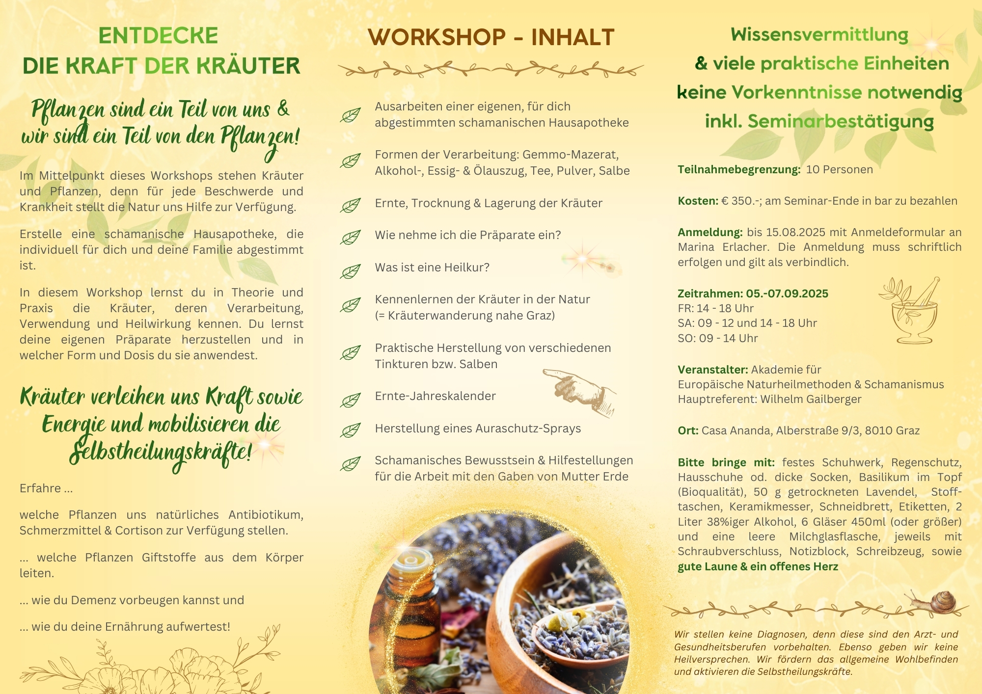 - Ausarbeiten der eigenen, für dich abgestimmten schamanischen Hausapotheke